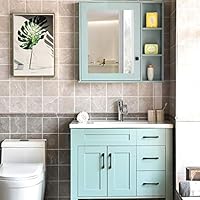 مرآة خزائن الحمام خزانة الملابس مرآة الحائط حامل تخزين الحمام الأمريكي خزانة البحر الأبيض المتوسط اللون أزرق الحجم 80 75 سم Amazon Ae