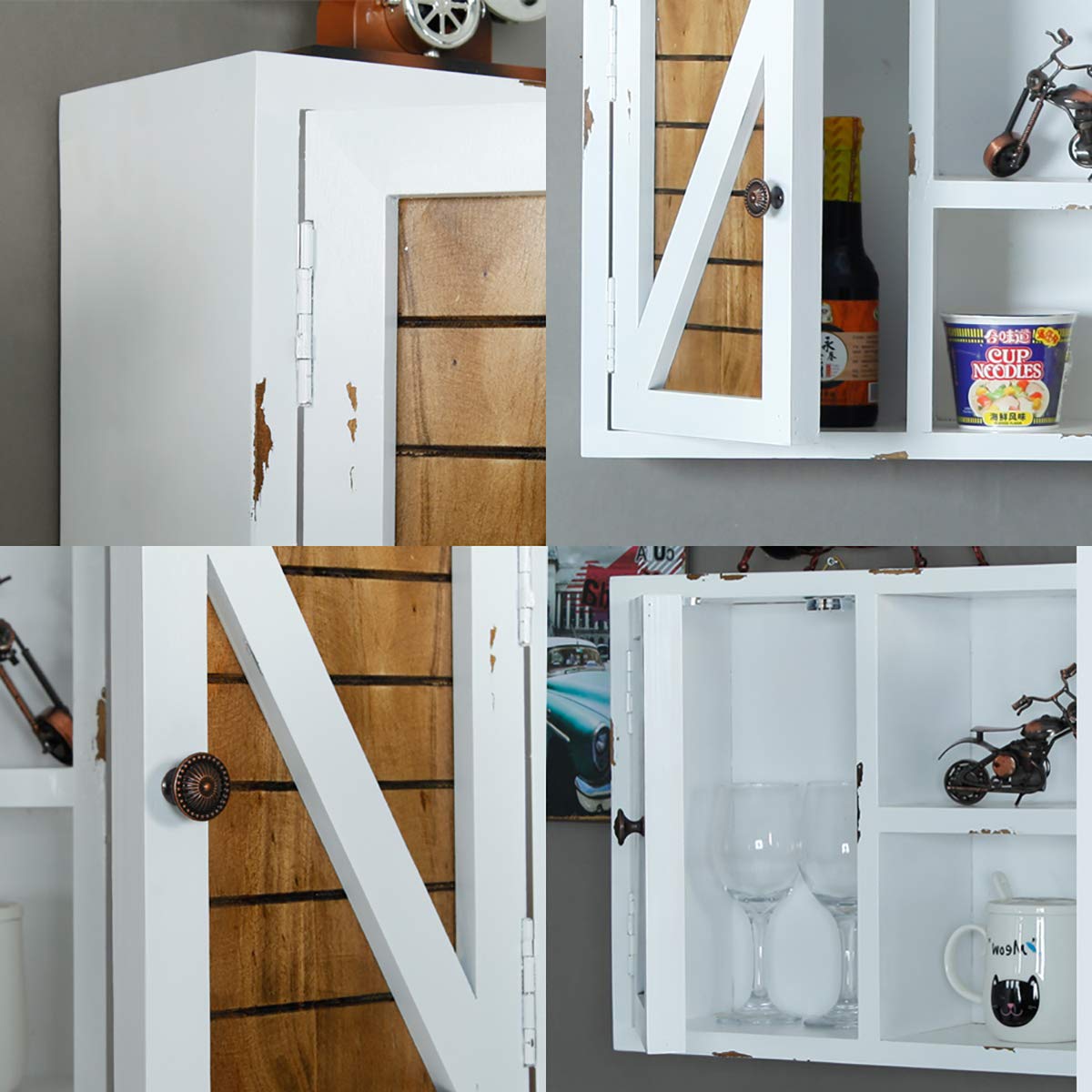 خزائن حائط Country Farmhouse وخزائن تخزين للمطبخ من خشب ريفي مع بابين أماميين قفل معلق متدلي 28 بوصة ديكور فني بلمسة نهائية بيضاء Amazon Ae