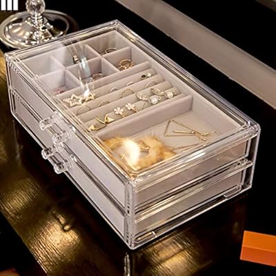 صندوق تخزين المجوهرات الشفاف Kcakek صندوق عرض مجوهرات شبكي دبوس الشعر مجوهرات تخزين خرطوشة التخزين خزائن بسيط خاتم الغبار مجوهرات صندوق تخزين مجوهرات Large Amazon Ae