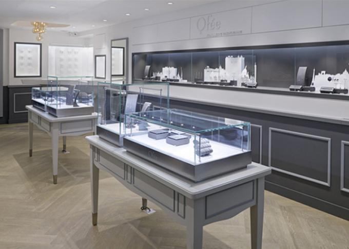 مجوهرات زجاجي خشبي عرض خزانة صنع وفقا لطلب الز بون مع Led ضوء