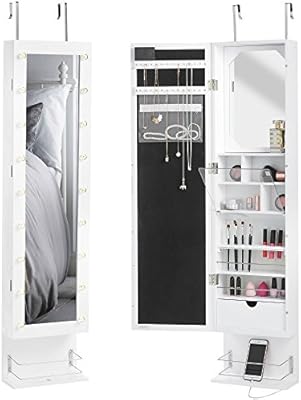 خزانة المجوهرات من توينغ على الحائط مع مرآة ذات طول كامل قابلة للقفل منظم مجوهرات كبير أبيض Amazon Ae
