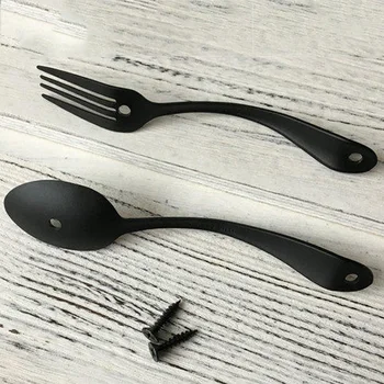 الأثاث الإبداعي مقبض صغير ملعقة شوكة السكاكين خزانة خزانة مقبض الطلاء الأسود خزانة باب خزانة درج سحب Pens Aliexpress